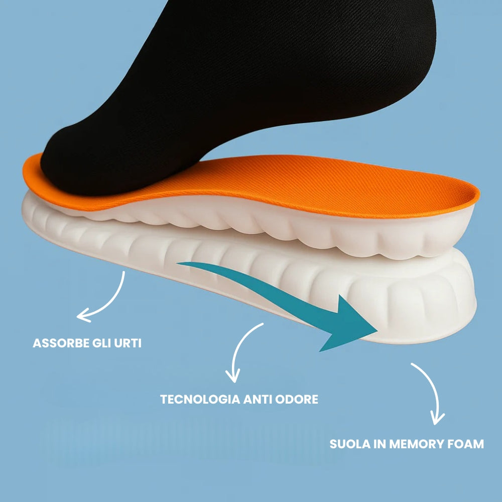 “Finalmente i miei piedi stanno bene tutto il giorno! Il memory foam si adatta perfettamente e la tecnologia anti-odore è fantastica.”